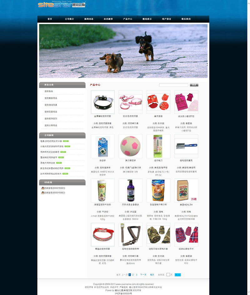 模板編號:     S1195 寵物狗寵物貓家養小寵物玩具建站模板