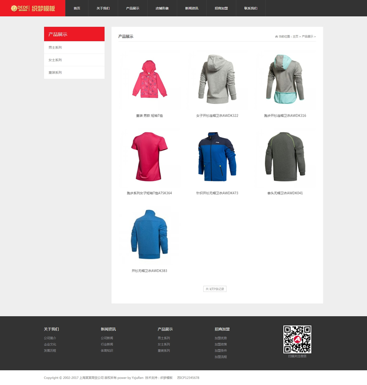主頁 > 網站建設 > 網站模板 > 婚慶、攝影、旅行、戶外 > 健身器材體育用品加盟店站織夢源碼運動服裝加