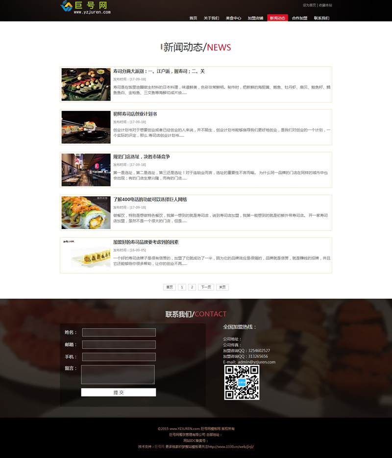 模板編號:     B1020 壽司料理餐飲管理企業織夢模板