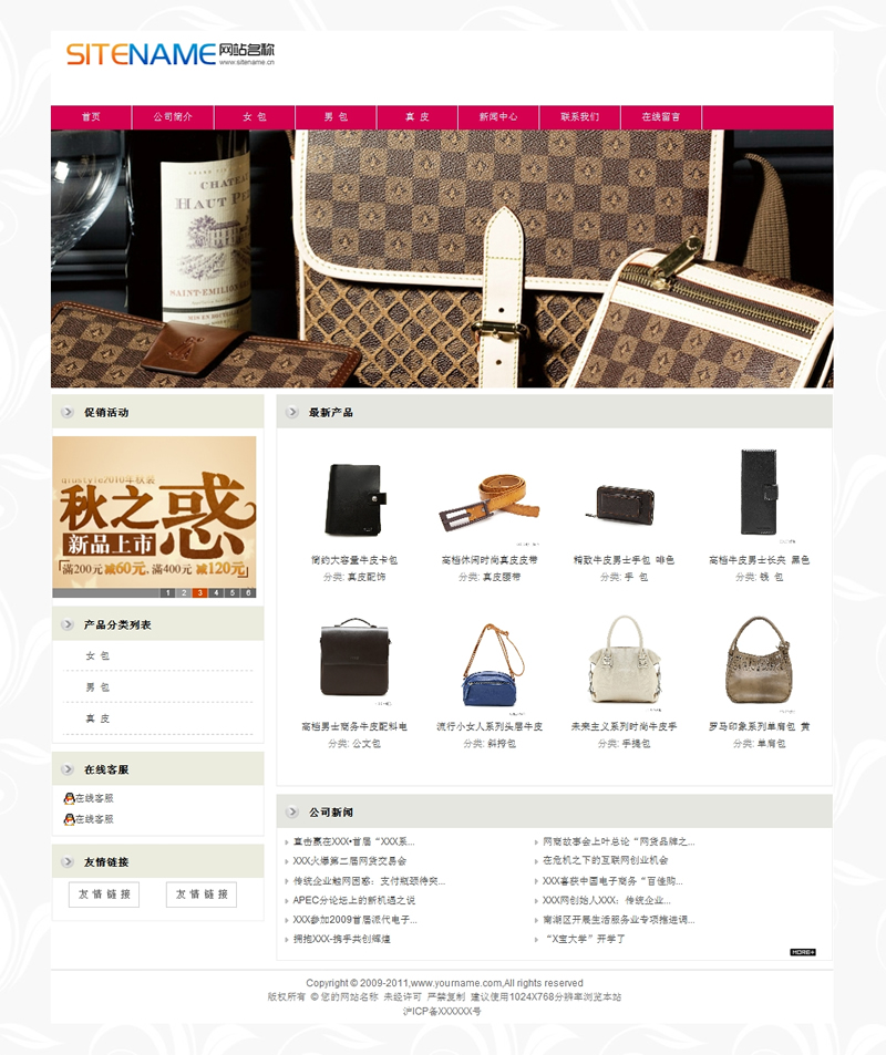 模板編號(hào):     S1038 皮具用品常用網(wǎng)站建站模板