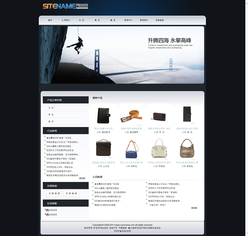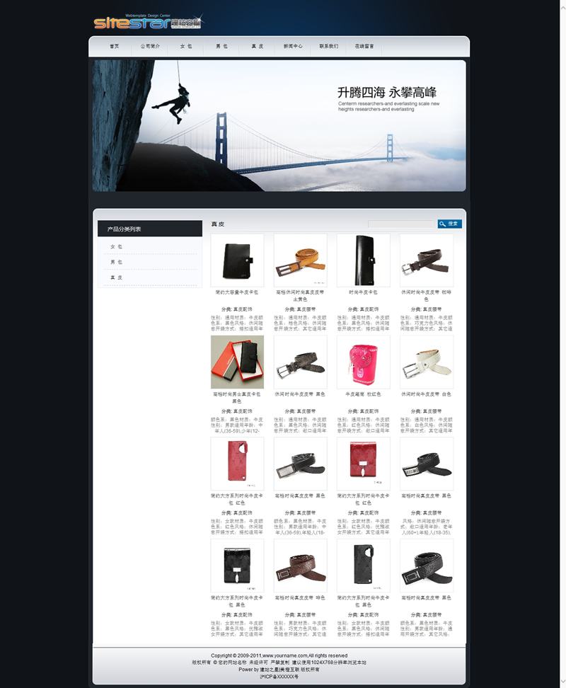 模板編號:     S1049 皮包皮帶包裝等包制小商品網站建站模板