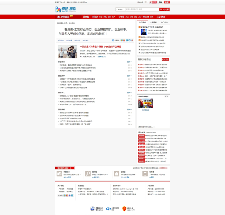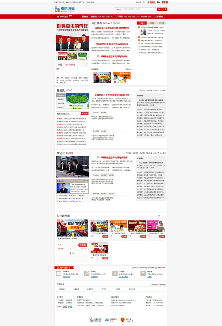 模板編號:     B1827 紅色大型創業財富資訊類整站模板
