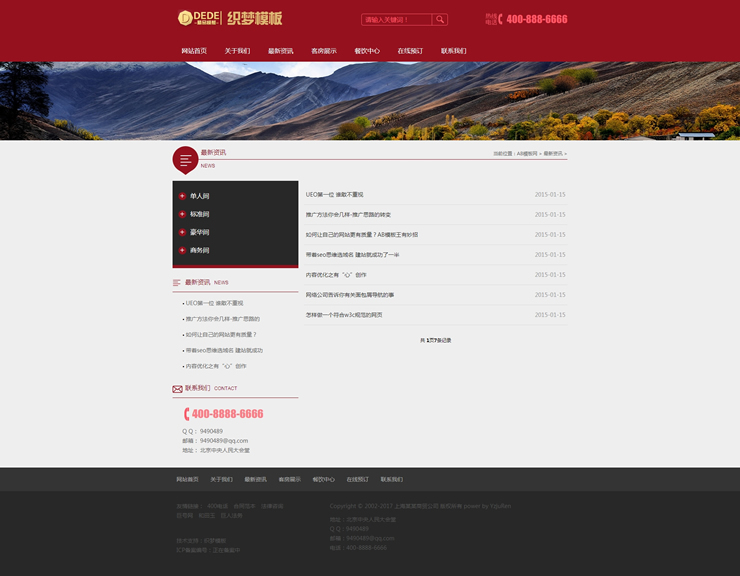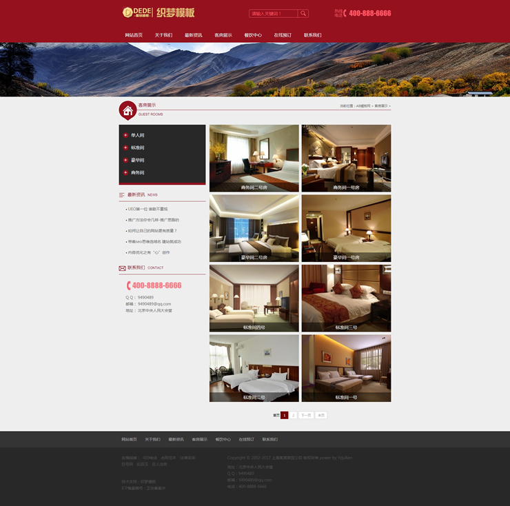 模板編號:     B1909 一款紅色酒店旅館網站源碼織夢餐飲酒店通用網