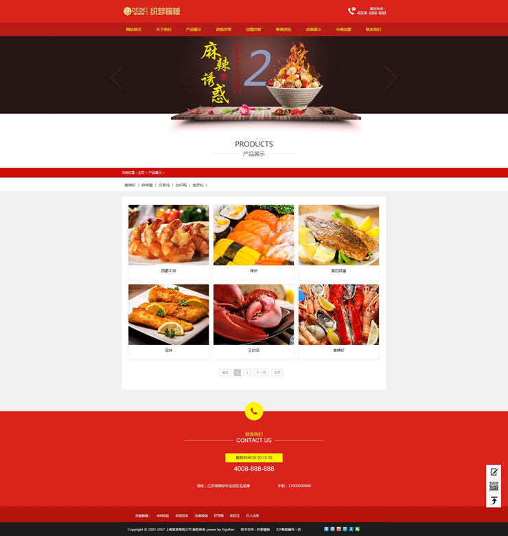 模板編號:     B2085 紅色風格食品飯店類企業網站織夢整站模板源碼