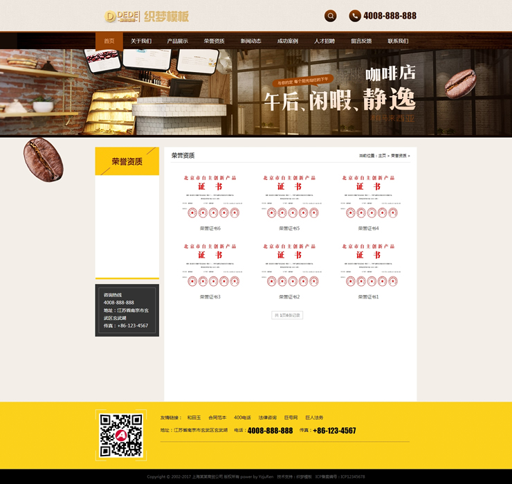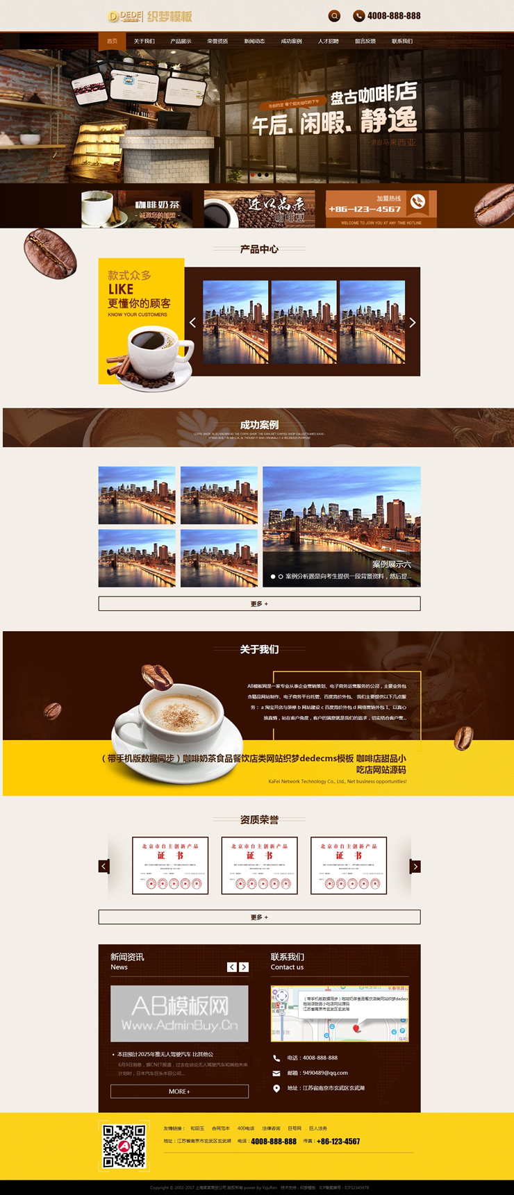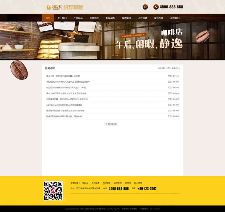 模板編號:     B2242 咖啡奶茶食品餐飲店類網(wǎng)站織夢dedecms模板咖啡店