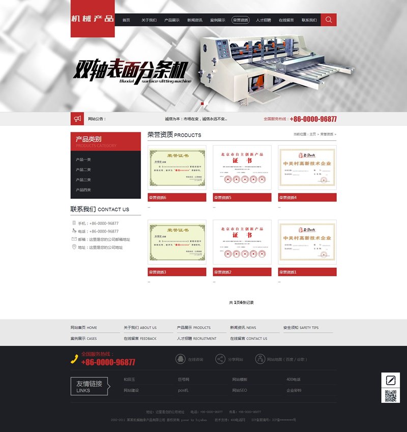 模板編號:     B1134 機械軸承分條機類網站類織夢模板(帶手機端)