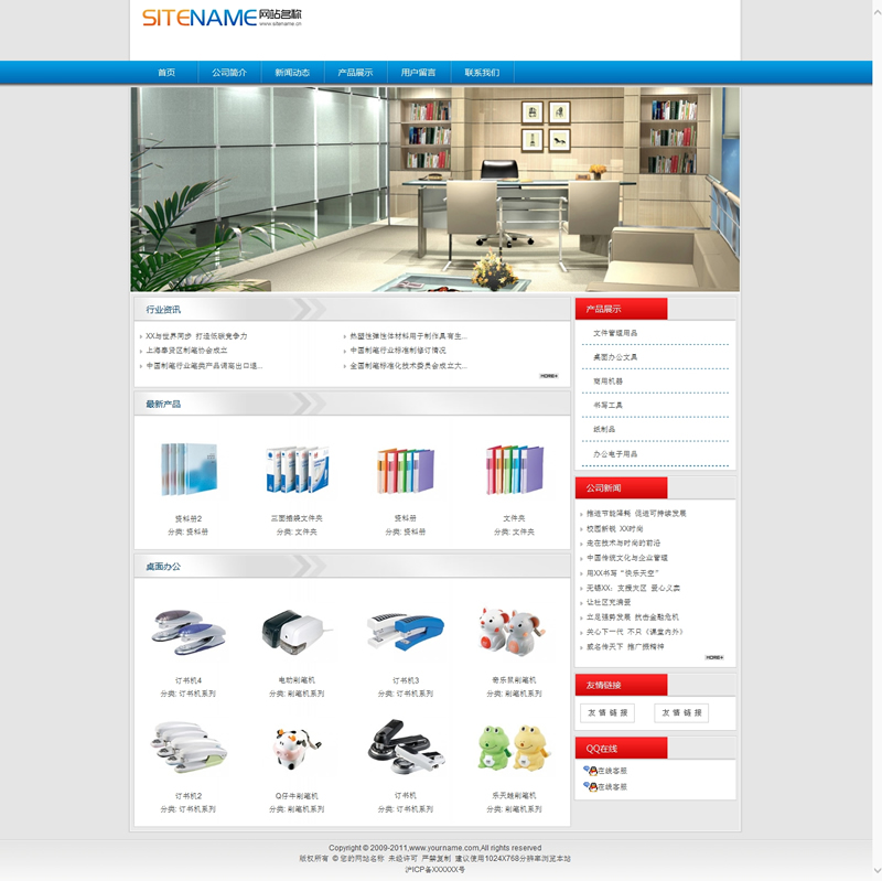 模板編號(hào):     S1229 辦公用品耗材學(xué)習(xí)辦公用品建站模板