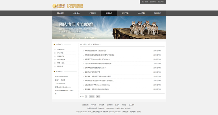 模板編號:     B1732 自適應電子產品類通用企業織夢模板