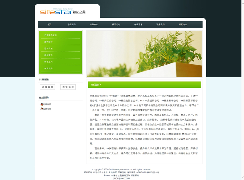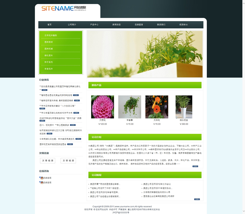 模板編號:     S1240 花木展示林業產品綠化產業建站模板