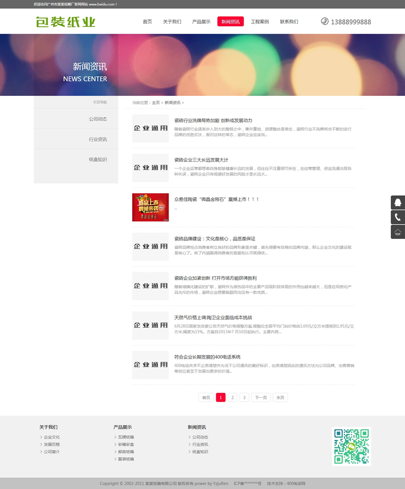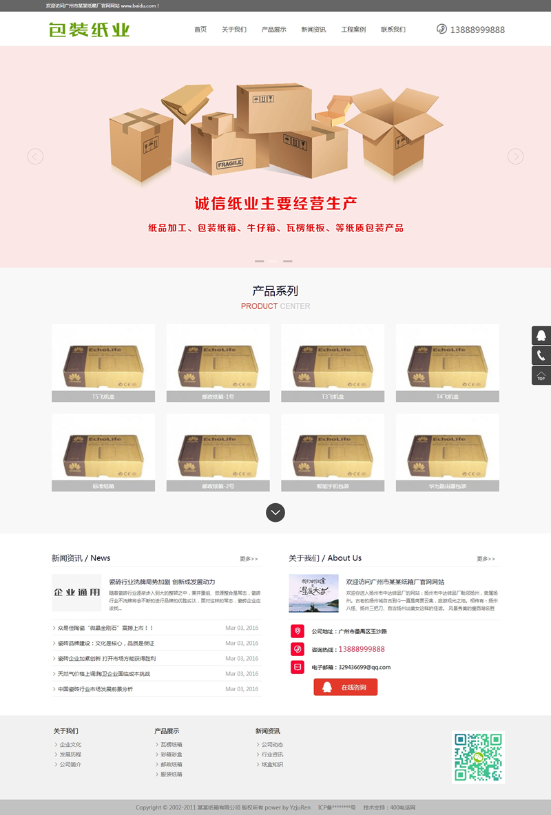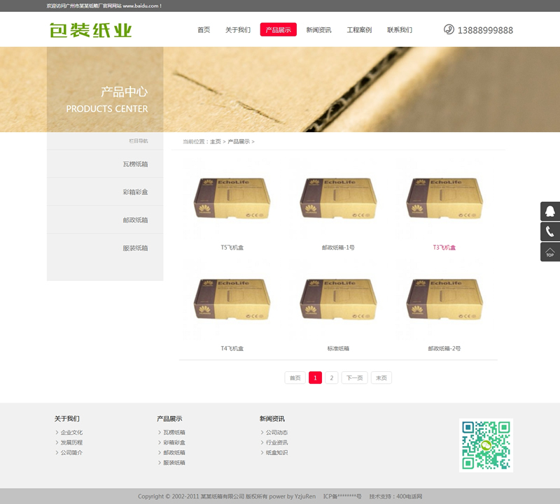 模板編號:     B1333 響應式包裝紙業紙箱類網站織夢模板(自適應手機