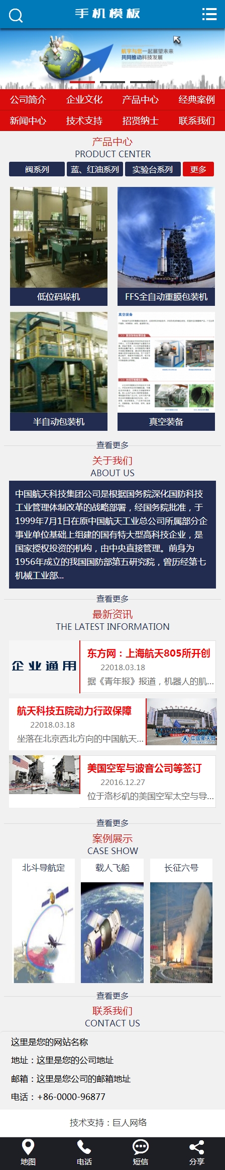 主頁 > 網站建設 > 網站模板 > 農業、工業、五金、通用 > 中英雙語航天科技設備類網站織夢模板(帶手機端