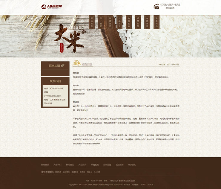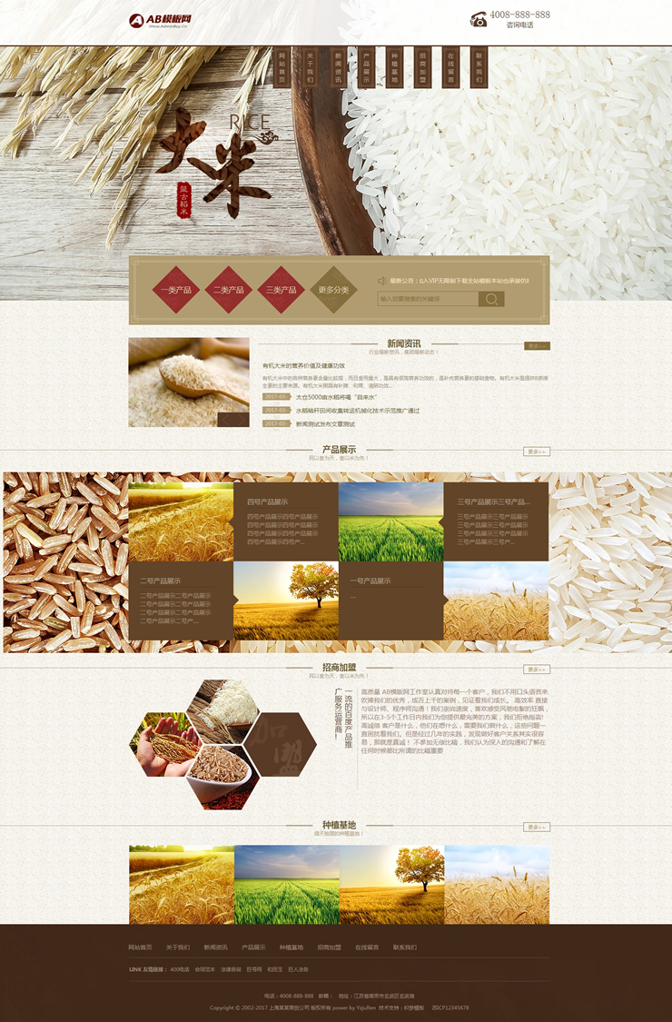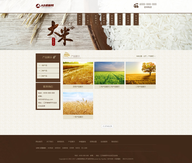 綠色有機大米網站源碼谷類農作物農業網站織夢