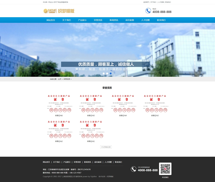 一、整套模板純手寫div+css代碼,符合W3C標準,完美兼容 IE6/7/8/9/10、Firefox、Chrome、Opera、Safari、360瀏覽器等主流瀏覽器,經測試無錯位,加載速度飛快。