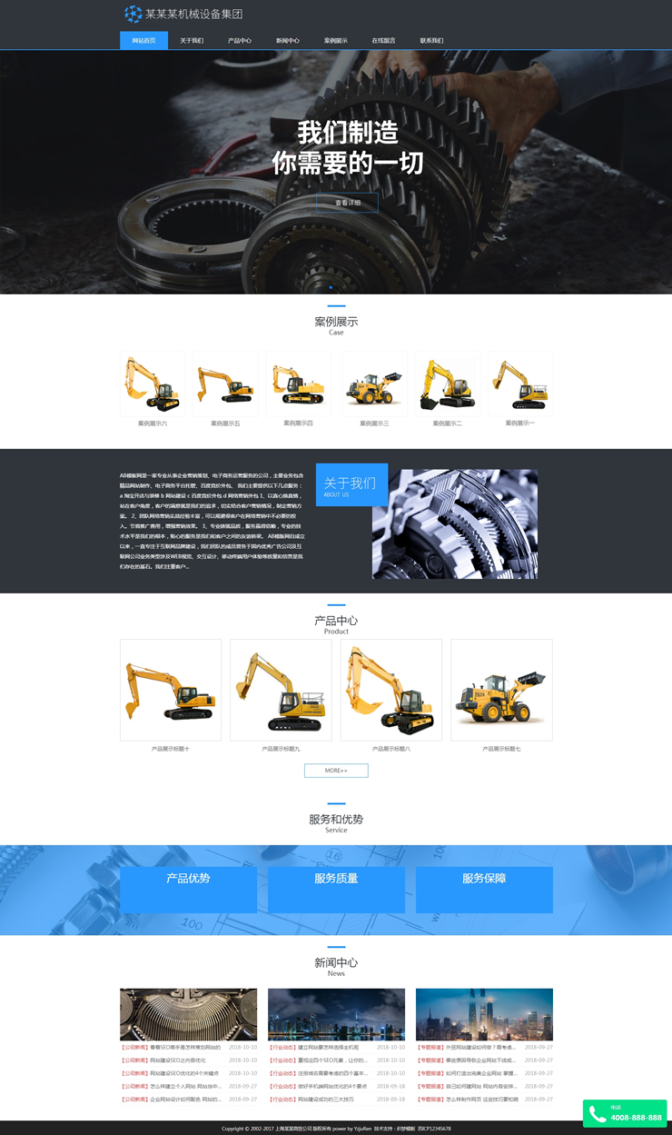 主頁 > 網站建設 > 網站模板 > 農業、工業、五金、通用 > 響應式五金機械類織夢模板HTML5藍色機械零部件網