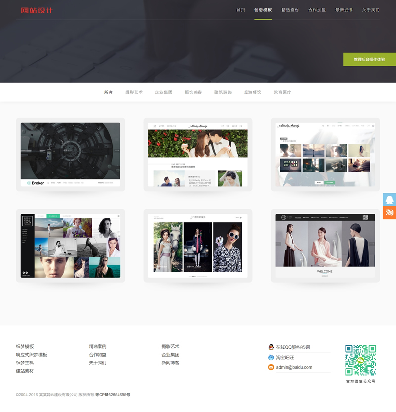 一、整套模板純手寫div+css代碼,符合W3C標準,完美兼容 IE6/7/8/9/10、Firefox、Chrome、Opera、Safari、360瀏覽器等主流瀏覽器,經測試無錯位,加載速度飛快。