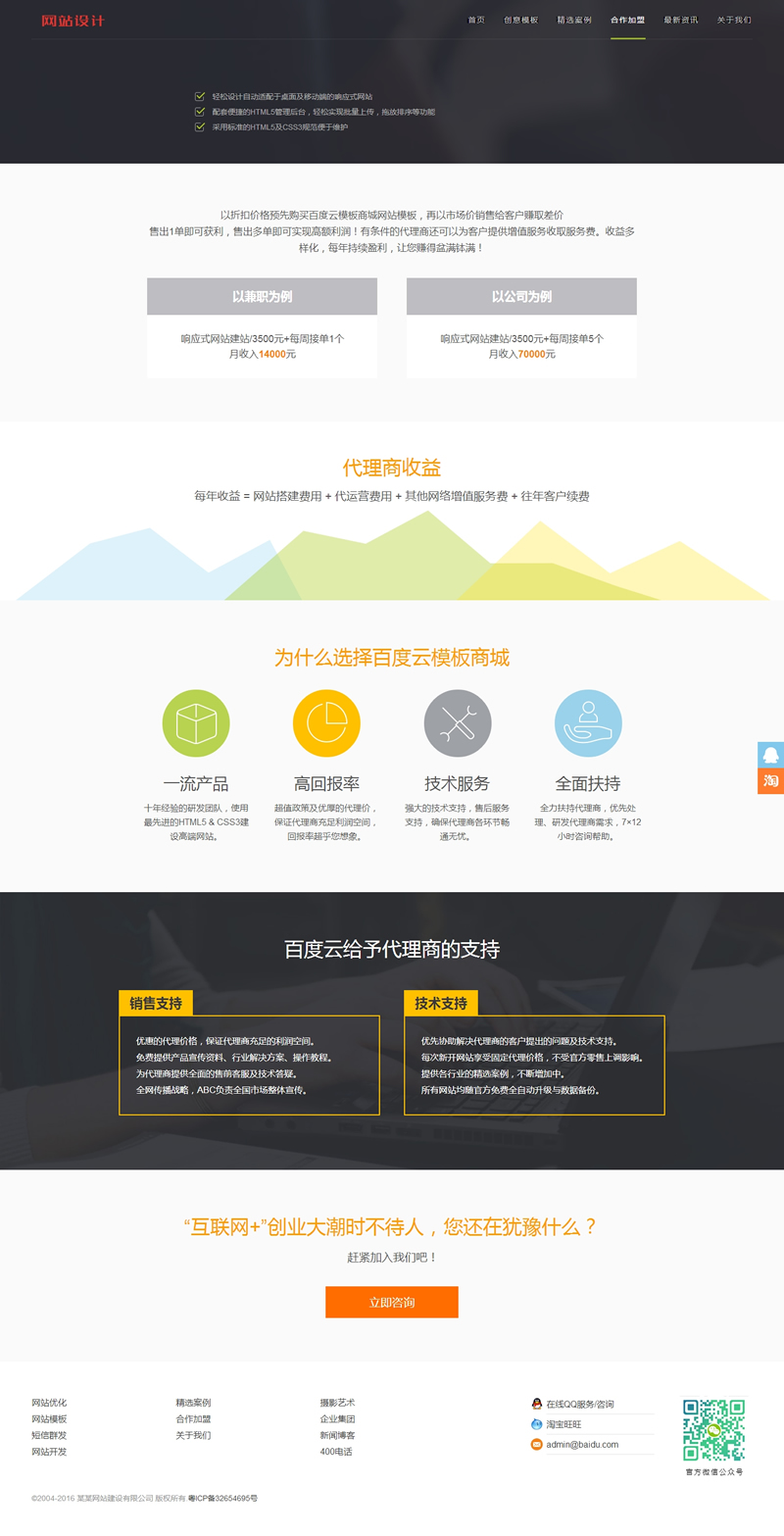 二、本模板可免費提供給廣大建站愛好者學習使用,但不提供任何形式的咨詢解答服務。為了尊重本公司的設計成果,請使用模板時添加本站網址為友情鏈接,否則本站將追究其版權使用的權限。