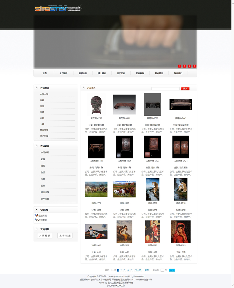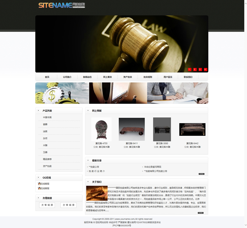 模板編號:     S1520 行業典當行精品拍賣工藝術拍賣建站模板