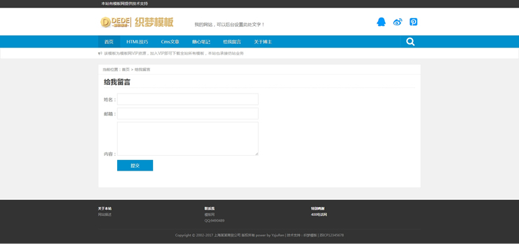 二、本模板可免費提供給廣大建站愛好者學習使用,但不提供任何形式的咨詢解答服務。為了尊重本公司的設計成果,請使用模板時添加本站網址為友情鏈接,否則本站將追究其版權使用的權限。