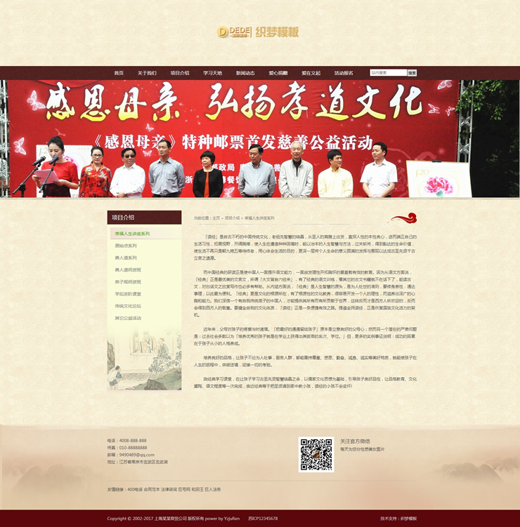 二、本模板可免費提供給廣大建站愛好者學習使用,但不提供任何形式的咨詢解答服務。為了尊重本公司的設計成果,請使用模板時添加本站網址為友情鏈接,否則本站將追究其版權使用的權限。