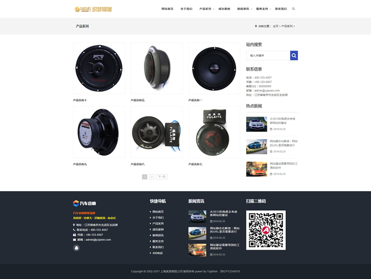 模板編號:     B2548 響應式汽車音箱喇叭低音炮電子產品網站織夢模