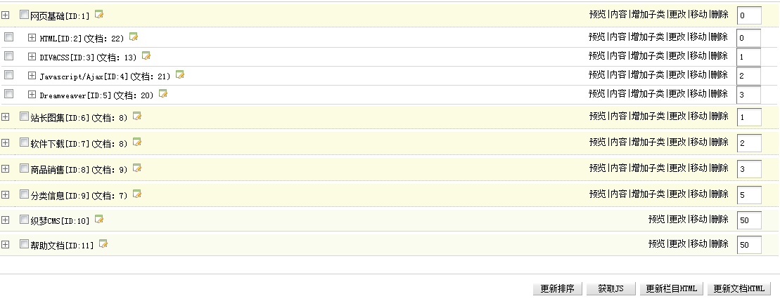 點擊網站欄目管理