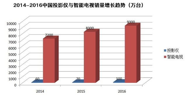 然而,抱負很豐滿,現實很骨感。 2016 年中國智能投影儀銷量僅為 100 萬臺, 2017 年充其量也就 120 萬- 150 萬臺,,這與獨占中國家庭娛樂老大地位的電視機動輒幾千萬臺的市場容量比擬較,幾乎微不足道。