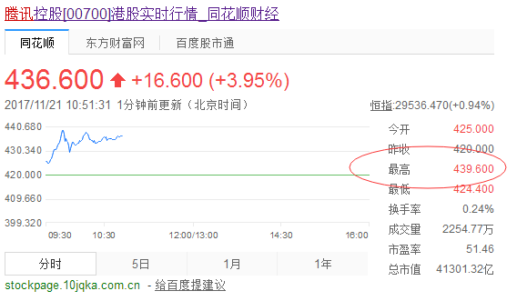 站長之家(Chinaz.com) 11 月 21 日消息 近日來,騰訊股價連連上漲,繼昨天首破 5000 億美元大關成全球第六大市值的公司后,今天騰訊市值再次上漲有了新的突破。