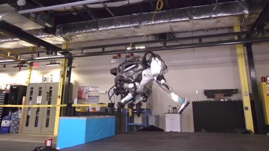 如果說人類在這個(gè)領(lǐng)域已經(jīng)略有成果的話,那就是Atlas了。在過去的幾年里,它不但學(xué)會(huì)了后空翻,并且變得更加輕便和更加靈巧,更加不容易跌倒了。即使它真的跌倒,它也能本身爬起來。