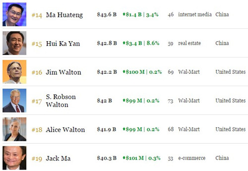 目前在福布斯實時富豪榜上排名最高的國內富豪是馬化騰,他的身家在本周一就已超過 400 億美元,現在身家為 436 億美元,在福布斯實時富豪榜排在第 14 位。