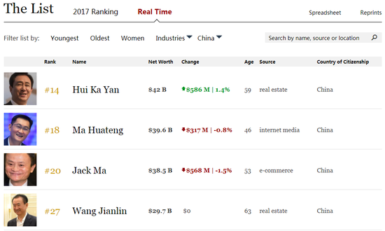 福布斯中國富豪榜實(shí)時(shí)榜單