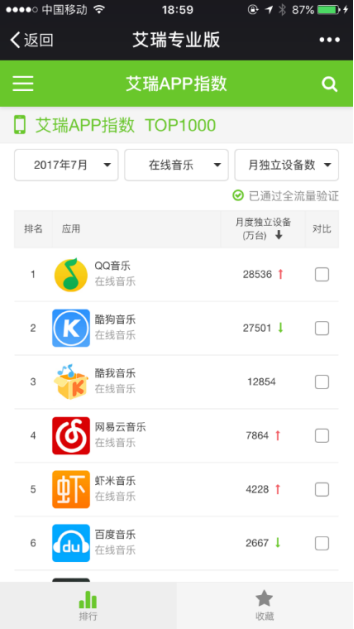 在艾瑞近期發布的7月份艾瑞APP指數Top 1000排行榜中,酷我音樂以超過1.28億的絕對優勢位列在線音樂類第三,居于騰訊音樂集團的酷狗音樂和QQ音樂之后,在總榜中排名第三十,穩居在線音樂行業第一梯隊。