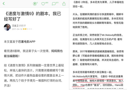 如今的好萊塢六大電影公司除了迪斯尼之外,要么巨額虧損,要么瀕臨收購,陷入到不拍IP等死,拍IP找死的境地。007系列是好萊塢流水線電影的典范,硬是把猛男艷遇美女香車拯救世界的故事講了50多年;而《速8》上映之后,豆瓣里已經有人把《速9》的劇本提前公布了,看下來沒弊端。