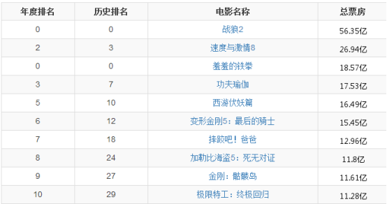 截止目前,2017年票房內地已經突破400億元,而在前十的影片之中,屬于續拍的作品有《戰狼2》、《速度與激情8》、《西游伏妖》、《變形金剛5》、《加勒比海盜5》、《金剛:骷髏島》、《極限特工》,拍新題材就能擠進Top10的,算是祖墳冒青煙。