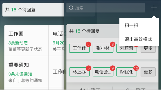 目前,馬上辦的“高效模式”已全面開啟,主面板整合了待服務項和最新聊天信息,已讀未讀,一目了然,便于用戶快速甄別事件的緩急并及時進行功能操作。用戶登錄馬上辦,會自動默認進入高效模式,便于用戶利用碎片化時間收發消息和處理事件,強化執行力,制止用戶錯過待辦信息,提高響應速度和時效性。