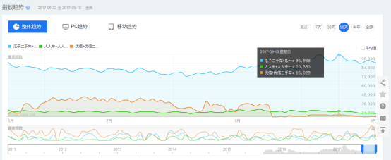 百度指數(shù)顯示,進入9月份以來,瓜子二手車的百度指數(shù)持續(xù)領先優(yōu)勢明顯,以9月10日為例,瓜子二手車的百度指數(shù)是人人車的4.7倍,是優(yōu)信二手車的6.4倍。