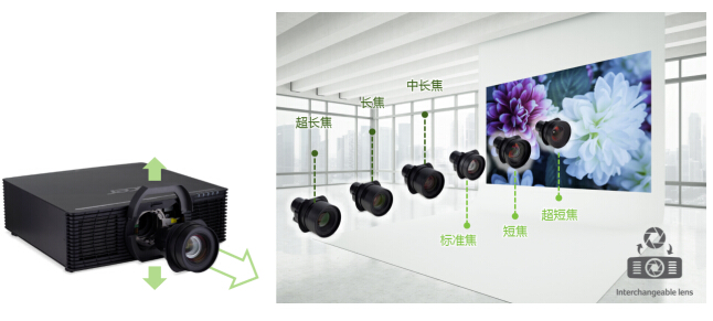 與傳統的工程投影機比擬,,宏碁LV-X20、LV-WU20 和P8800 均采用了中置鏡頭的設計方式,只需在屏幕中軸線放置投影機,便可輕松完成安置,無需再為偏移的調整而頭疼。LV系列的機身還自帶電動變焦馬達,使用遠程控制便可進行對焦的調整和鏡頭的轉動。且該系列投影機可任意標的目的旋轉 360 度定位靈活,并兼容 6 款可選鏡頭,鏡頭范圍從超短焦到超長焦,極大地拓展了應用范圍和適應能力。