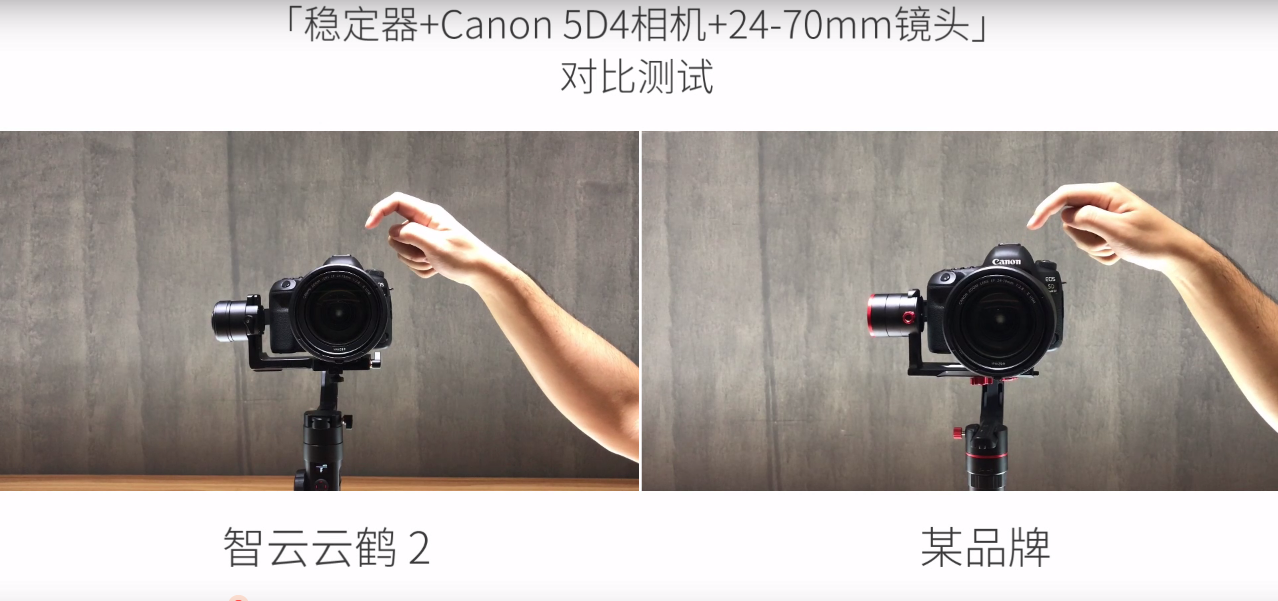 這里教大家一個簡單措施來考量不變器扭力的大小。步驟一:將不變器加載相機后豎直放在桌面上;步驟二:手指快速輕彈相機邊沿,讓相機產生小幅度的來回震蕩;步驟三:不雅觀察相機的狀態,可以看到,云鶴 2 上搭載的相機回中速度快,且擺幅小,說明不變器扭力大;而別的一臺擺幅大,云臺軟踏踏的,回中速度慢,說明扭力小。