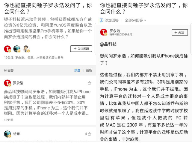 至于外界一直在說的“如何能吸引我從iPhone換成錘子?”話題,羅永浩坦誠,“因為計算平臺的遷移對一個人是成本很高的事情”,但是優勢在于,“我們(錘子)的用戶人群跟iPhone的用戶人群高度重疊,我們旗艦機很大比例上轉化的是iPhone的用戶”。