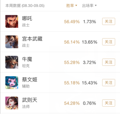 不過這也怪宮本武藏的粉絲們技術(shù)太好,被削成這樣,在英雄勝率榜上,依然高居第二,出場(chǎng)率也高的一筆,過分了!槍打出頭鳥的道理你們懂不懂?想讓宮本大人有個(gè)牢固的后半生,大家還是暫時(shí)先放棄他吧,否則無敵的他還能再削,加藍(lán)條也不是不成能!