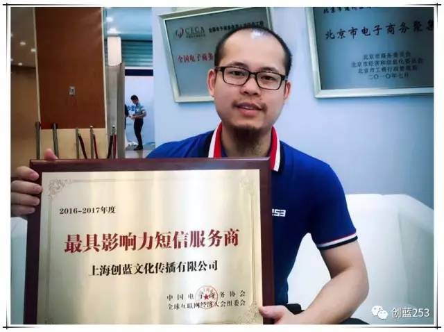 在本次會議上創藍 253 與360,易道等知名企業一起獲得“2015- 2016 年度互聯網經濟大獎”,同時也收獲了“最具影響力短信辦事商”榮譽。
