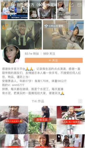 在快手的平臺上,類似陶津津這樣記錄奮斗的年輕人還有很多,這些草根用戶通過本身不懈的努力,以及在平臺上的勇敢展示而獲得關注和認可。