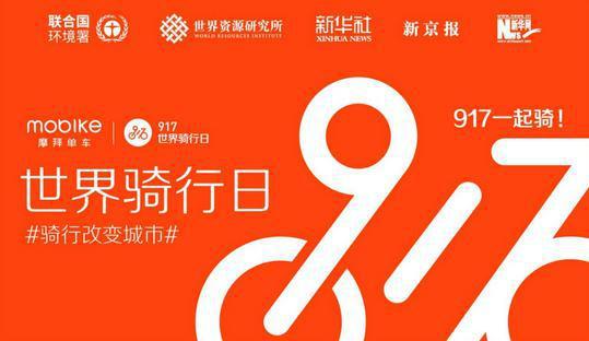 8 月 29 日,,摩拜單車攜手首批聯合發起機構——聯合國環境署、世界資源研究所等全球性國際組織,以及新華社、新京報等國內權威媒體,共同發起“ 917 世界騎行日”。鼓勵用戶騎車出行、倡導綠色交通。“ 917 世界騎行日”系首個騎行文化節日,也是第一個共享單車節。