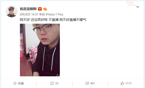 在微博博文,深夜狗糧中,藍煙寫了本身跟煙嫂在一起的過程:異地戀,每周周末都在火車上度過,煙嫂陪當時還在打職業的藍煙去外地打角逐,卻沒有一點時間可以一起出去走走。所以退役后,,藍煙就堅決地選擇了能夠給喜歡的人更多陪伴的主播職業。