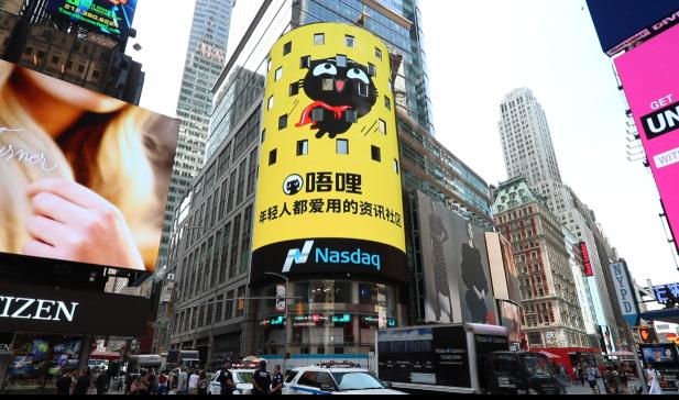 2017 年 8 月 29 日,一只萌趣的小黑貓出現(xiàn)在納斯達(dá)克大屏上,引得時(shí)代廣場(chǎng)上川流不休的人群時(shí)時(shí)昂首流連駐足,作為國(guó)內(nèi)首家登上時(shí)代廣場(chǎng)的資訊類APP,唔哩頭條向世界展示了他的個(gè)性和實(shí)力。