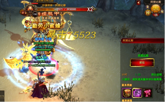 進入之后,看到的阿努比斯和古埃及壁畫上的稍微有些差別。金光閃耀的阿努比斯帶著神的榮耀,難道這里就是傳說中的冥界?這不是冥界而是沙漠,阿努比斯在這里被稱為“沙漠邪神”,擁有590W的生命值。