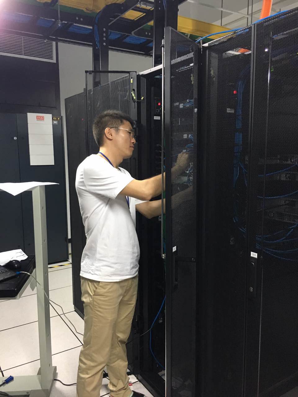 (圖2:天下數據工程師越南機房內維護,本樓層超對折機柜均為天下數據所有)