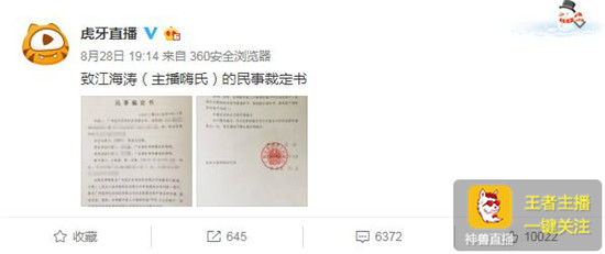 楚河vs嗨氏撕逼大戰(zhàn)貌似已經迎來“尾聲”,最終嗨氏頒布頒發(fā)轉戰(zhàn)直播平臺,并在 27 號晚上開始了直播。虎牙直播發(fā)布致嗨氏的違約聲明以及律師函,就此案的結果已經出來了,虎牙直播勝訴。