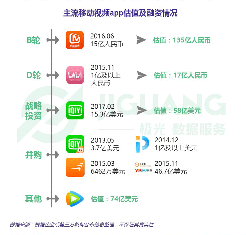 ? 按照公開資料顯示,移動視頻行業中騰訊視頻估值最高,為 74 億美元