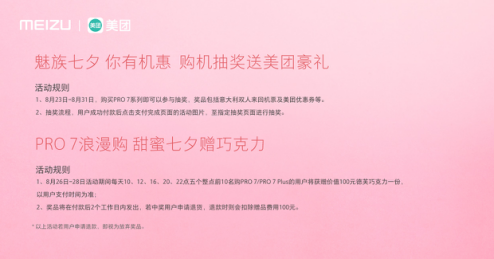 8 月 23 日- 28 日期間,只要在魅族商城購(gòu)買PRO7 系列手機(jī),在魅族社區(qū)帖曬出購(gòu)買魅族PRO7 的頁(yè)面,踩中固定樓層,即可獲得意大利七夕雙人往返機(jī)票。此外更有魅友家定制手提包、魅族EP- 51 耳機(jī)、海量美團(tuán)優(yōu)惠券等福利等著你!同時(shí),還有價(jià)值 100 元的美團(tuán)西餐、紅酒、咖啡、披薩、電影等多品類美食優(yōu)惠券送出……七夕,就該這么過(guò)!