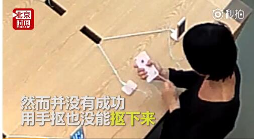 近日,一女子在北京王府井蘋果店內,偷走一臺展示用iPhone7 樣機。其作案手法讓人震驚,,那是相當的簡單粗暴呀!